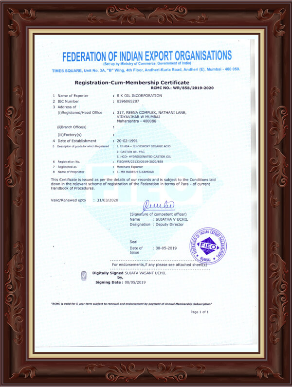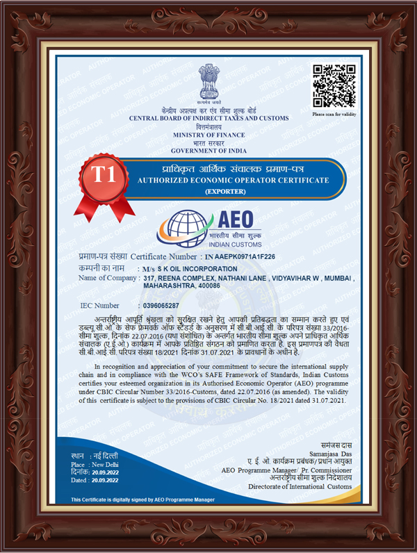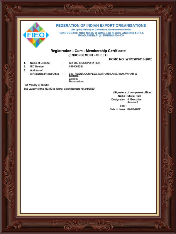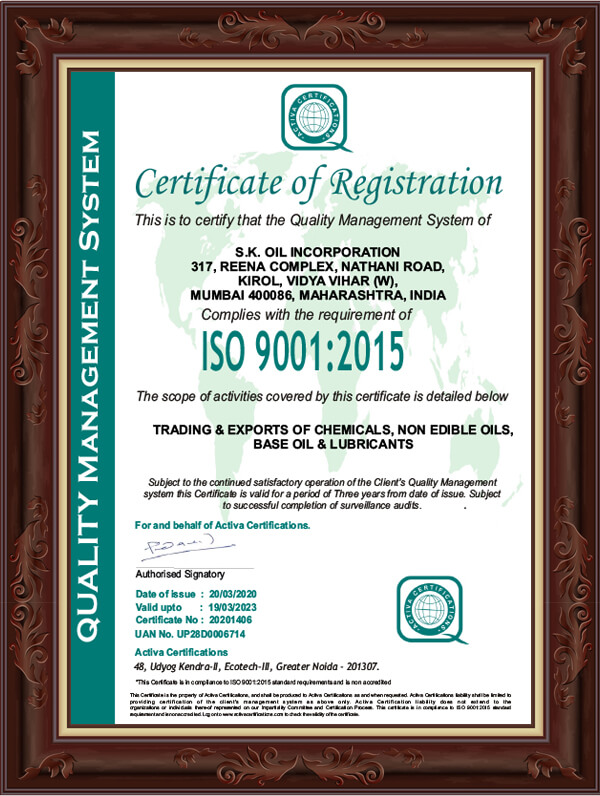 We at S. K. Oil Incorporation established in the year 1991 with 3 decades of Manufacturing & Marketing experience have been catering to lots of MNC & Indian large scale manufacturer.